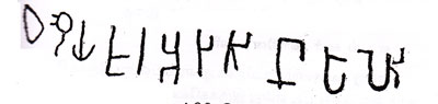 11. கருங்காலக்குடி பிராமி எழுத்து மதுரை வட்டத்தின் மேலூருக்கு வடக்கே எட்டுக் கல் தொலை வில் கருங்காலக்குடி இருக்கிறது. இவ்வூருக்கு அருகில் இருக்கிற குன்றுகளில் ஒன்று ‘பஞ்சபாண்டவர் குட்டு’ என்று கூறப்படுகிறது. குன்று என்னும் சொல் குட்டு என்று கூறப்படுவது கவனிக்கத்தக்கது. இந்தக் குன்றில், இடைக்காலத்தில் செதுக்கியமைக்கப்பட்ட அருகக் கடவுளின் திருமேனிகளும் வட்டெழுத்துக் கல்வெட்டுக்களும் காணப் படுகின்றன. இவை நம்முடைய ஆராய்ச்சிக்கு உரியவை அல்ல. இந்தக் குன்றின் மேலே இன்னோர் இடத்தில் இயற்கையாக அமைந்த குகையும் கற்படுக்கைகளும் பிராமி எழுத்துக் கல்வெட்டும் இருக்கின்றன. இவை 1909 ஆம் ஆண்டு கண்டுபிடிக்கப்பட்டன. இந்தக் கல்வெட் டெழுத்து 1911 ஆம் ஆண்டின் தொகுதியில் 561ஆம் எண்ணுள்ள தாகப் பதிவு செய்யப்பட்டிருக்கிறது. இந்தக் குகையையும் பிராமி எழுத்தையும் பற்றி 1912ஆம் ஆண்டு எபிகிராபி ஆண்டு அறிக்கையில் 57 ஆம் பக்கத்தில் கூறப்பட்டுள்ளன. இந்த ஆண்டு அறிக்கையிலேயே இந்தப் பிராமி எழுத்தின் நிழற்படம் வெளியிடப் பட்டிருக்கிறது.1 இந்தப் பிராமிக் கல்வெட்டெழுத்து பதினொரு எழுத்துக்களைக் கொண்ட சிறு வாக்கியம். இந்த எழுத்தின் வரிவடிவம் கீழே காட்டப் பட்டுள்ளது. வலப்புறத்தில் இரண்டாவது எழுத்து தெளிவாக இல்லாமல், கல்லில் உள்ள புரைசலோடு சேர்ந்து வட்டவடிவமாகக் காணப் படுகிறது.