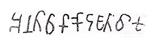 திருப்பரங்குன்றத்தில் இன்னோர் இடத்தில் உள்ள குகையில் எழுதப்பட்டுள்ள பிராமிக் கல்வெட்டெழுத்தைப் பார்ப்போம். மலையின் உச்சியில் உள்ள இந்தக் குகைக்கு ஏறிச் செல்வது மிகக் கடினமானது. இந்தக் குகையில் எழுதப்பட்டுள்ள பிராமி வாசகம் பன்னிரண்டு எழுத்துக்களைக் கொண்டது. இஃது 1951-52ஆம் ஆண்டின் 142வது எண்ணுள்ளதாகப் பதிவு செய்யப்பட்டிருக்கிறது. இந்த எழுத்துக்கள் தெளிவாகத் தெரிகின்றன. இதன் வரி வடிவம் இது: