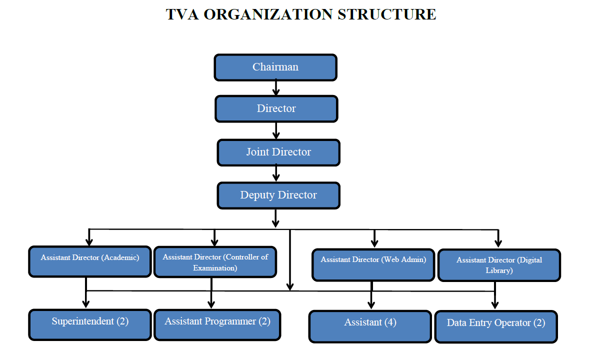 TVA is functioning under the guidance of board of directors and general body consisting of academician and officers as members.