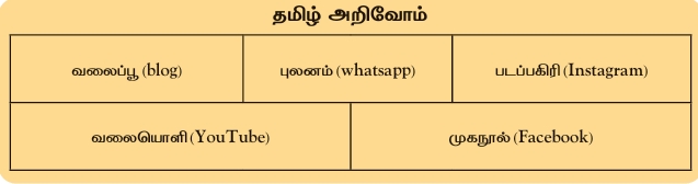 | அத்தை | : | அட… இதுதான் உன் பிரச்சனையா? கவலையை விடு, மணிமொழி. நான் உனக்குத் தமிழில் செய்தி அனுப்பச் சொல்லித் தருகிறேன். | |