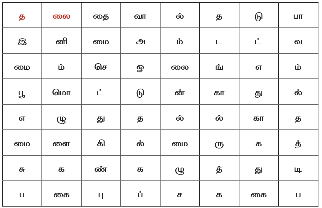 கட்டங்களில் உள்ள சினை, குணம், தொழில் பெயர்ச்சொற்களை வண்ணமிட்டுக் காட்டுக.