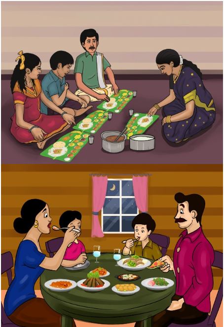 அக்காலத்திலும், இக்காலத்திலும் பின்பற்றப்படும் உணவு உண்ணும்முறை குறித்து உங்கள் ஆசிரியருடன் கலந்துரையாடுக.