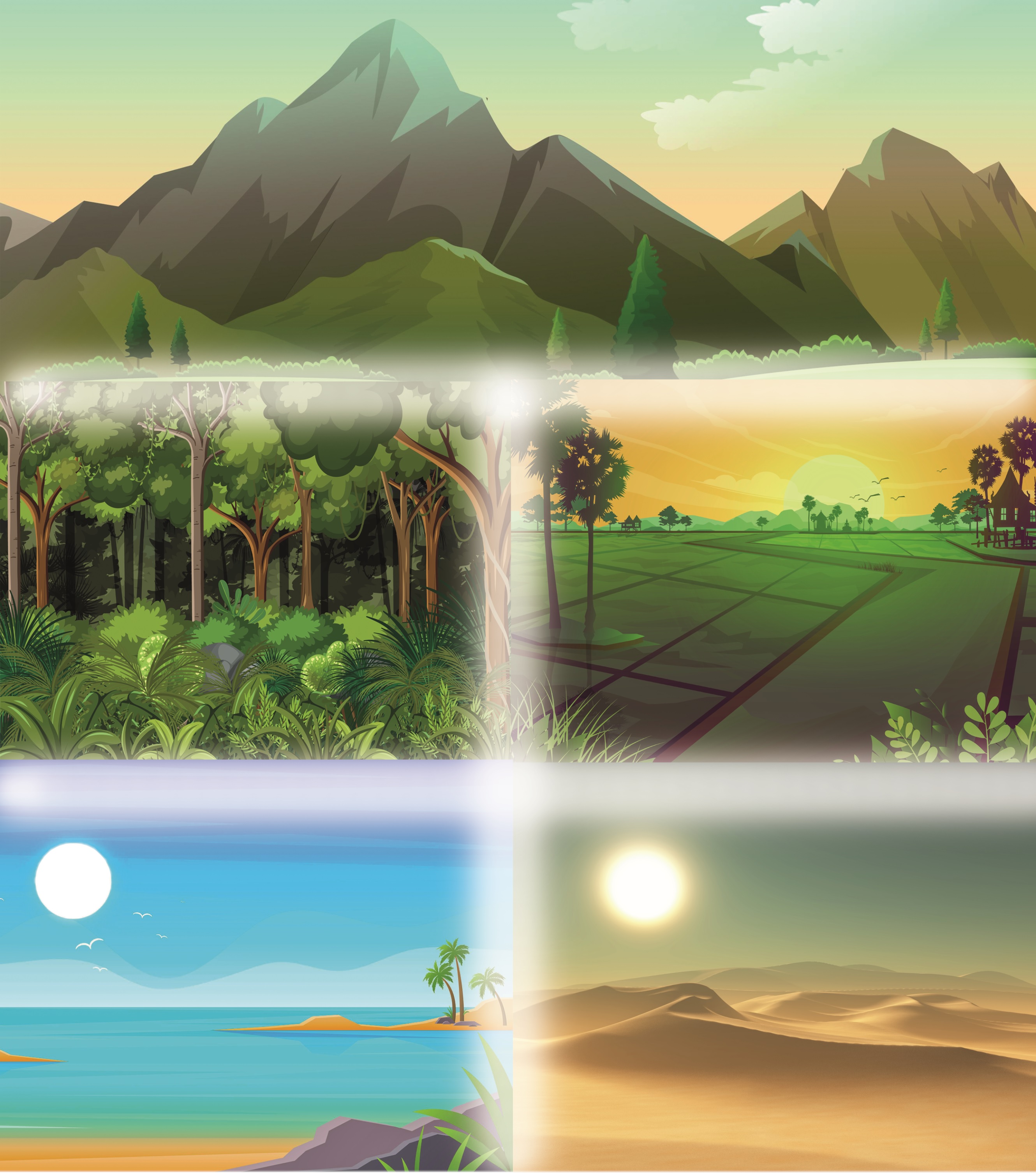 படங்களில் உள்ள நிலச்சூழல்கள் குறித்து வகுப்பில் ஆசிரியருடன் கலந்துரையாடுக.