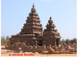 | “ஆமாம், லிஸி, அதோ பார். கடற்கரைக் கோவில். இங்கு வருபவர்கள் இதனைப் பார்க்காமல் செல்லமாட்டார்கள். இது, கட்டுமானக் கோவிலுக்கு எடுத்துக்காட்டாக உள்ளது. இதனை உலகப் பாரம்பரியச் சின்னமாக 1984ஆம் ஆண்டு யுனெஸ்கோ அறிவித்துள்ளது” என்றார் தாத்தா. “மிகவும் சிறப்பு. நீங்கள் கூறுவதைக் கேட்கும்போது எனக்கு வியப்பாக இருக்கிறது தாத்தா” என்றாள் லிஸி. |
