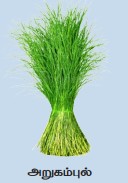 | வெளிநாட்டினரால் பச்சை இரத்தம் (Green Blood) என்று அழைக்கப்படுவது அறுகம்புல். இது, இரத்தத்தைத் தூய்மைப்படுத்துகிறது. ஜெர்மனியில் அறுகம்புல் சாறு கலந்த ரொட்டியைத் தயாரித்து உண்கின்றனர். இலங்கையில் முதன்முதலில் பள்ளிக்குச் செல்லும் குழந்தைகளின் நாக்கில், அறுகம்புல்லைப் பாலில் நனைத்துத் தேய்த்து அனுப்புகின்றனர். |