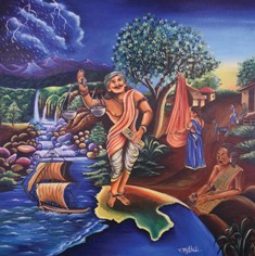 ’ஆற்றிலே மிதந்து செல்லும் சிறு ஓடம்போல, இவ்வுலக உயிர்கள் விதியின் படி செல்லும் இயல்புடையன’ என்ற உண்மையை இப் பாடல் அடி உணர்த்துகிறது.