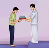 ஆசிரியர் கொடுத்த பரிசை செல்வம் கண்ணினைக் காக்கும் இமைபோல பாதுகாத்து வருகிறான். |