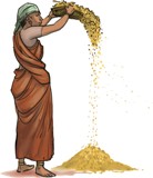 | 4. | தூற்றுதல் | - | காற்று வீசும் திசையில் முறத்தில் உள்ள தானியத்தை மேலிருந்து கீழாக மெதுவாகக் கொட்டுதல் | ||