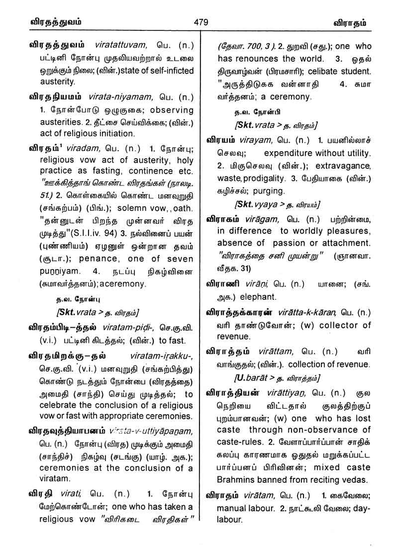 பகுதி (பக்கம் எண்) முன்னுரை (1 - 25) த - தௌ (1 - 108) ந - நௌ (109 - 202) ப - பௌ (203 - 357) ம - மௌ (358 - 408) ய - யௌ (409 - 431) ர - ரௌ (431 - 445) ல - லௌ (446 - 462) வ - வௌ (463 - 499) பின்னிணைப்பு (500 - 553)