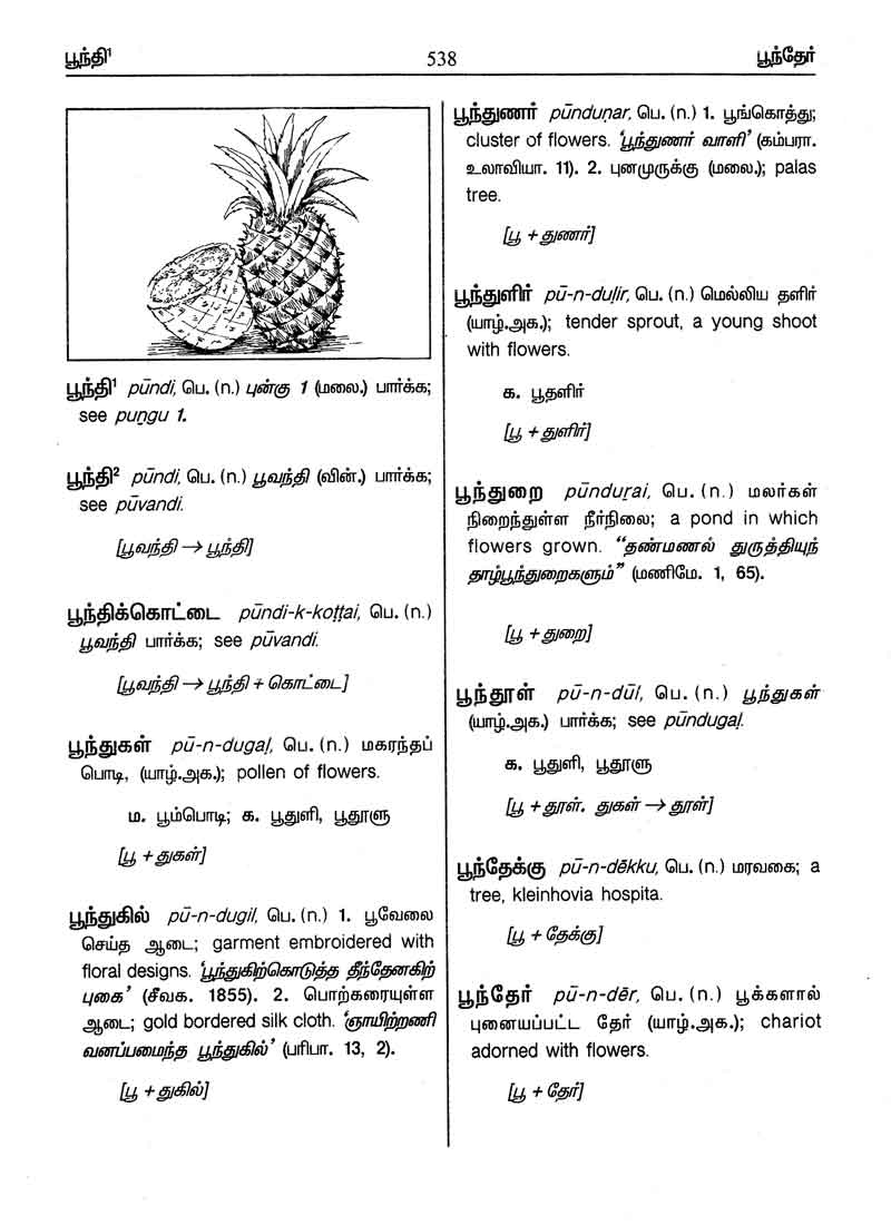 பகுதி (பக்கம் எண்) முன்னுரை (1 - 12) பி (1 - 196) பீ (197 - 217) பு (218 - 478) பூ (478 - 577)