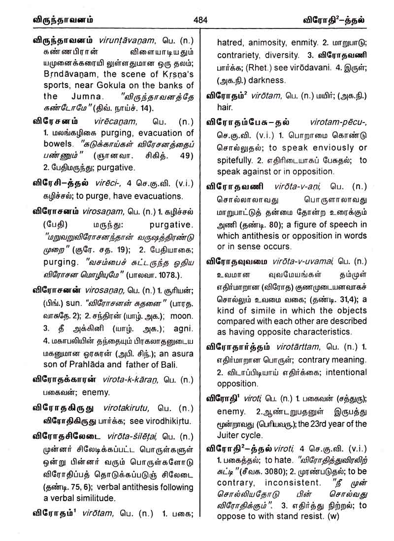 பகுதி (பக்கம் எண்) முன்னுரை (1 - 25) த - தௌ (1 - 108) ந - நௌ (109 - 202) ப - பௌ (203 - 357) ம - மௌ (358 - 408) ய - யௌ (409 - 431) ர - ரௌ (431 - 445) ல - லௌ (446 - 462) வ - வௌ (463 - 499) பின்னிணைப்பு (500 - 553)