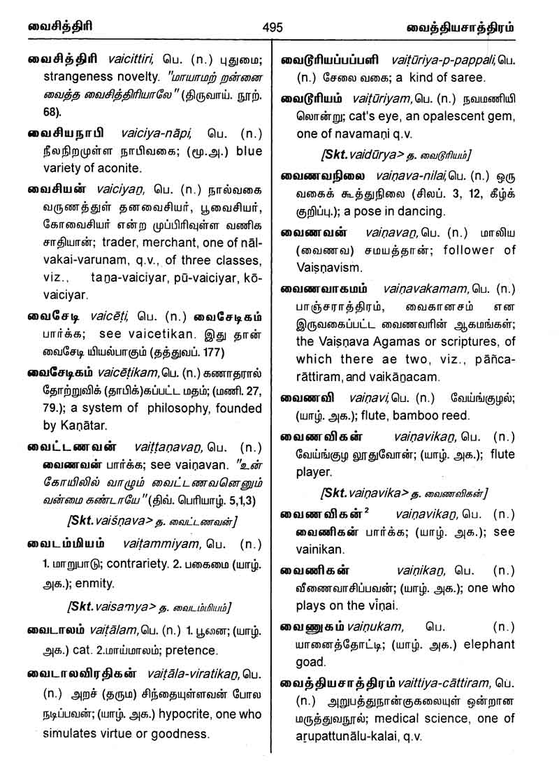 பகுதி (பக்கம் எண்) முன்னுரை (1 - 25) த - தௌ (1 - 108) ந - நௌ (109 - 202) ப - பௌ (203 - 357) ம - மௌ (358 - 408) ய - யௌ (409 - 431) ர - ரௌ (431 - 445) ல - லௌ (446 - 462) வ - வௌ (463 - 499) பின்னிணைப்பு (500 - 553)